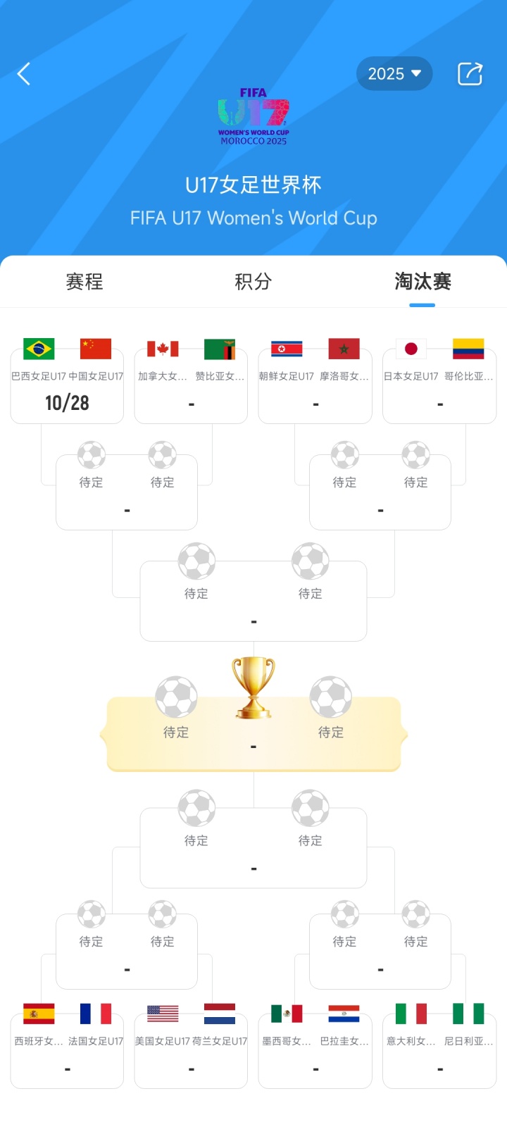 在此前的小组赛中,中国U17女足2胜1负小组第2出线,巴西U17女足则是1胜1平1负排名A组第2;本场比赛的胜者将在1/4决赛中对阵加拿大女足与赞比亚女足的胜者。