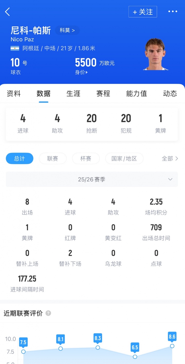 罗马诺在播客中说道:“帕斯天赋惊人,已经吸引了全欧洲的关注。热刺在此前就曾试图签下他,报价总金额高达7000万欧元。但科莫和皇马都拒绝了这份报价。要知道,尽管帕斯名义上归属科莫,但皇马有他50%的转会分成以及1000万欧元的回购条款。